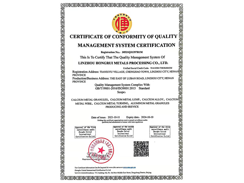 質量管理體系認證證書英文版